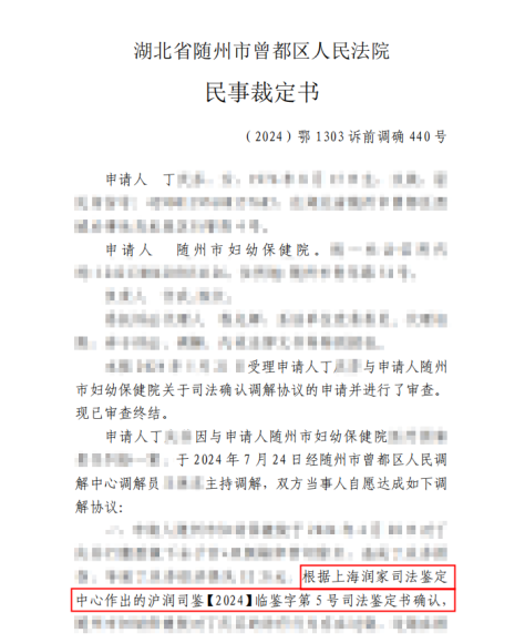 鉴定机构出具鉴定结果后,曾都区法院诉前调解团队再次组织双方进行调解,在向双方分析利弊、耐心调解后,双方均同意调解。